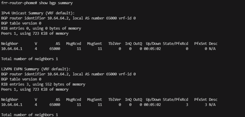 这篇文章本来应该是家庭网络v1.4的,回过头想想自己的原始需求只有一个vlan需要两地互通,只是为了实现分布式网关从而增加额外的复杂度,有些得不偿失。加之FRR的部分配置仍旧有些存疑,没有完全弄明白,所以最终停留在了实验阶段,或许那天需要把运行在FortiGate上的IPv4单播BGP路由单独剥离出来的时候,会使用这个方案吧。